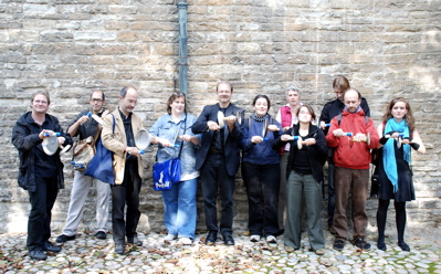 Keine Vorbildung nötig Die Idee hatte der amerikanische Klangkünstler Dan Senn. Er ist sich bewusst, dass viele Menschen diese Art von Tönen nicht lieben. "Aber so kann man mit allen Menschen komplexe Musik machen." Dafür brauchen sie keine musikalische Vorbildung. Man habe sich lediglich am Freitag im Cuba für eine Einführung getroffen. Senn führt den kleinen Trupp an. Oft bleibt er an Orten stehen, die ihm akustisch interessant erscheinen, geht in den Eingangsbereich von Geschäften oder in den Vorraum des Doms. Hier wird die Musikgruppe allerdings nach kurzer Zeit von einem Wächter verscheucht: Die Vertreibung aus dem Paradies. In der Ludgeristraße gesellt sich der klingende Zug einer brasilianischen Trommelgruppe hinzu. Jetzt vermischen sich die heißen südamerikanischen Rhythmen mit den flächigen Geräuschen der Küchenutensilien. Erstaunlich, die Synthese funktioniert: lauter Beifall nicht nur der umstehenden Menschen, sondern auch von den Trommlern! Pure Erholung Immer wieder beäugen Fußgänger das seltsame Instrumentarium. "Für mich ist das direkt Erholung", meint ein 73-jähriger Radfahrer. Die Töne seien in seinem Ohr pure Beruhigung bei dem Verkehrslärm, erklärt er. Ein paar Meter weiter sind zwei Damen ebenfalls begeistert. Einen "sehr schönen Klang" attestieren sie den Küchenutensilien. "Ich finde so was Experimentelles gut, weil Münster sonst so konservativ ist", begrüßt Brunhild Reuter (66) die Aktion. Die Erwartungen von Senn-Mitstreiter Markus Brüning haben sich damit erfüllt: "Widerstand und fröhliche Gesichter, weil wir solch einen Quatsch machen." |